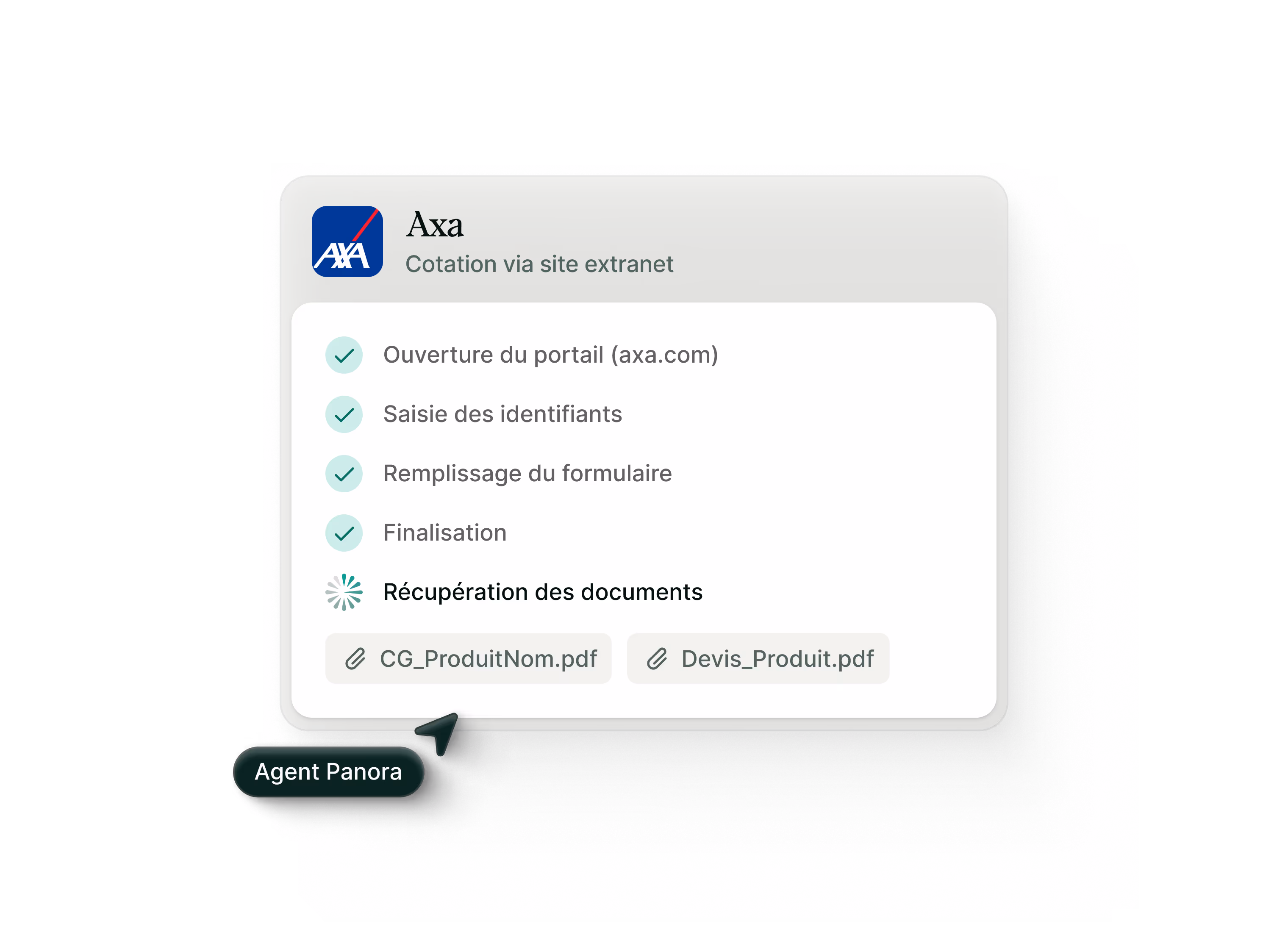 Panora dépose la cotation via extranet ou prépare un email complet aux souscripteurs.