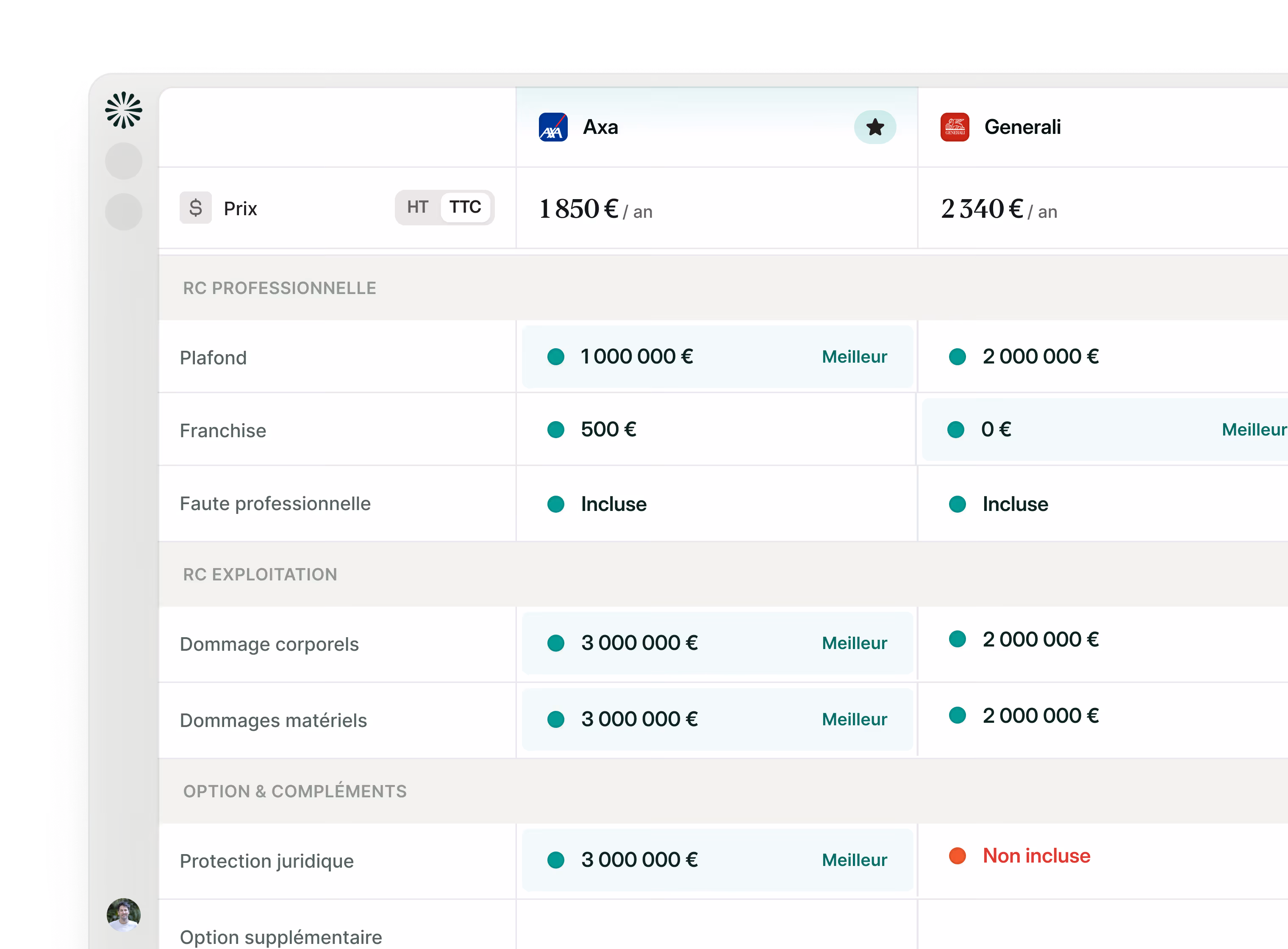 Comparez vos devis assureurs avec précision et générez une synthèse claire, fiable et défendable.
